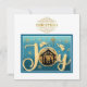 Modern Gold "JOY" Nativity Silhouette Christmas Holiday Card Celebrate the Joy of Christmas with this incredibly unique and elegant holiday card, an original design by you! This card brilliantly integrates the Nativity scene within the letter "O" of the word "JOY," creating a powerful and meaningful visual. The silhouette of Mary, Joseph, and baby Jesus in the manger is set against a serene teal and golden gradient sky, evoking the magic of the holy night. Two angels blowing trumpets flank the "J" and "Y," with the guiding Christmas Star above, all within the central teal panel. This panel is framed by a rich gold marble background with subtle sparkle accents, adding a touch of modern luxury and festive glam. Delicate snowflakes and stars are scattered throughout, enhancing the winter holiday theme. This card is perfect for those who want to send a religious Christmas message with a contemporary, artistic flair. It beautifully combines traditional meaning with a sophisticated, eye-catching design.