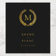Modern and elegant golden laurel wreath monogram, personalized wine labels. Font style and color can be customized.