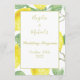 Lovely modern Save the Date with yellow lemon and green foliage; with golden scripts. Customize it with your own info.
