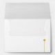 An elegant wedding invitation benvelope that features a gold line with two overlapping semi-circles on the right and a dot on the left positioned against a white background. Your initials and dots are on the flap. It is part of our “Jewelry inspired gold foil wedding invitation collection” wedding suite.