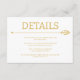 This wedding enclosure card with details of your wedding is an elegant addition to your special day, with a unique gold line with leaf and arrow design against a dark background. For a sophisticated touch, the backside showcases the couple's names in gold on black in a diagonal pattern - please note that if your names take up more or less space, the text size can be adjusted accordingly.