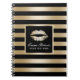 Modern Gold Lips Elegant Black & Gold Stripes Notebooks.