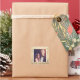Square photo sticker design features a favorite engagement or wedding photo framed by a pattern of love in modern script writing and a gold metallic background. Tip: crop your photo to a square format before uploading it to the site.