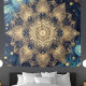 Modern Gold Mandala Blue Starry Night Celestial Tapestry