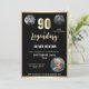 Modern Gold Metallic Surprise 90th Birthday Invitation. Celebrate a milestone in style with our Elegant Black & Gold 90th Birthday invite. Featuring a sophisticated black background adorned with luxurious gold faux foil, this design adds a touch of class to any celebration. Personalized with 3 photos, this invitation is perfect for making the guest of honor feel extra special. Make turning 90 unforgettable with this timeless and chic design!