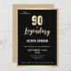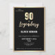 Modern Gold Metallic Surprise 90th Birthday Invitation. Celebrate a milestone in style with our Elegant Black & Gold 90th Birthday invite. Featuring a sophisticated black background adorned with luxurious gold faux foil, this design adds a touch of class to any celebration. This invitation is perfect for making the guest of honor feel extra special. Make turning 90 unforgettable with this timeless and chic design!