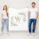 Modern Gold Monogram Greenery Floral Fleece Blanket
