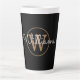 Modern Gold Monogram Script Black Latte Mug