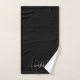 A elegant sweeping swash script gold monogram name towel set for your bathroom decor. Gold monogram white script, on black.