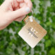 This chic keyring features a gold ombre faux glitter background. Customize it with your initial in white serif font and your name in dark gray handwriting-style brush script.