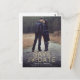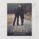 This elegantly minimalist save the date features simple typography and showcases a large photo of the engaged couple. On the front of the postcard, a full photo appears with a gold text overlay that reads "Save the Date," along with the couple's names, wedding date, and wedding location. Add additional wedding details (such as the wedding website) to the back of the postcard.