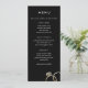 Clean and modern text is easily personalized on this chic, skinny format, wedding menu. White on black feels sophisticated and fresh when accented with a faux gold foil graphic of interlocked wedding rings and a coordinating pattern on the reverse. For an extra special touch, add your favorite engagement photo to the back using the "customize" options.