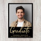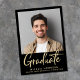 Celebrate a major milestone with this clean and contemporary graduation photo announcement, designed to put the graduate front and center. Featuring a bold gold script “Graduate” paired with a classic black background, this design strikes the perfect balance between modern style and timeless elegance. The minimalist layout highlights a single portrait while showcasing the graduate’s name, school, and class year. Ideal for college or high school graduations.