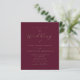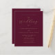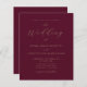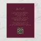 This simple, modern wedding invitation features gold-colored text on a burgundy background, with the words "the Wedding of" in elegant handwriting calligraphy. Add the couple's names in serif and the wedding details in sans serif font. The reverse side provides space for wedding details, along with a QR code guests can scan to visit your website and RSVP, which saves the cost of printing and mailing separate RSVP