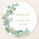 Modern Gold Script Eucalyptus Watercolor Wedding Round Paper Coaster