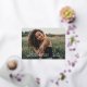 Stylish and elegant folded graduation thank you card features a senior photo with trendy "thank you" real gold foil script overlay. Personalize the modern white custom text with your grad's name, school, and class year. A custom thank you message can be added or handwritten inside the card.