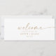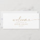 This modern gold script hanging seating chart welcome header is perfect for a minimalist wedding. The simple yellow gold color design features unique industrial lettering typography with modern boho style. Customizable in any color. Keep the design minimal and elegant, as is, or personalize it by adding your own graphics and artwork. The card prints on the front and back (double-sided). Please check the collection for the coordinating table number seating chart cards.