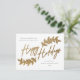 A modern script happy holidays gold foil branches business holiday card with simple typography. Click the edit button to customize this design.