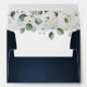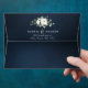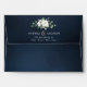 Modern faux gold calligraphy couple monogram design and watercolor white floral eucalyptus greenery on dark navy blue background, elegant and stylish, great wedding envelope with return address for greenery rustic wedding, botanical garden wedding, boho floral wedding in summer and winter.