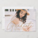Invite guests to celebrate the grad with our stylish photo graduation invitations. The graduation invitations feature the graduate's photo with "Graduate" in a gold modern calligraphy script overlay. Personalize the front of the modern graduation invite by adding the graduate's name, school name, and graduation year. The invite reverses to display your graduation party details and a trendy gold and white dotted geometric pattern.
