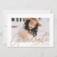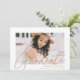 Invite guests to celebrate the graduation with our modern photo graduation party invites. The trendy graduation party invites feature the graduate's photo with "Graduate" in a gold modern calligraphy script overlay. Personalize the front of the invites by adding the graduate's name, school name, and graduation year. The invite reverses to display your graduation party details and a trendy gold and white dotted geometric pattern.