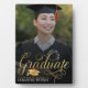 Show off your graduation photo with these trendy graduation plaque! This modern stylish graduation plague features beautiful gold script text spelling out the word graduation with a text template to personalize with the name, school and graduating year. Add additional message or click '' customize further''to edit this template.