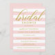Modern Gold Script Pink Stripes Bridal Shower Invitation