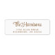 Modern return address label with your name in a stylish gold script and your address in simple gold typography.