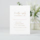 This modern gold script song request RSVP card is perfect for a minimalist wedding. The simple yellow gold color design features unique industrial lettering typography with modern boho style. Customizable in any color. Keep the design minimal and elegant, as is, or personalize it by adding your own graphics and artwork. Build your wedding guest list and your dance floor song list all at once! This wedding response card conveniently asks guests if they'll be able to attend your wedding, and also what song will get them to dance.