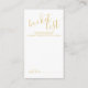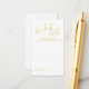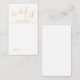 This card features title in gold modern calligraphy font style and details in gold modern sans serif font style on white background.