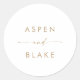 These modern gold script wedding envelope seals are perfect for a minimalist wedding. The simple yellow gold color design features unique industrial lettering typography with modern boho style. Customizable in any color. Keep the design minimal and elegant, as is, or personalize it by adding your own graphics and artwork. Personalize the label with the names of the bride and groom.