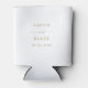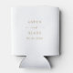 This modern gold script wedding favor can cooler is perfect for a minimalist wedding. The simple yellow gold color design features unique industrial lettering typography with modern boho style. Customizable in any color. Keep the design minimal and elegant, as is, or personalize it by adding your own graphics and artwork. Personalize the can cooler with the names of the bride and groom and the wedding date.