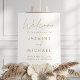 Welcome your wedding guests with this simple and elegant wedding welcome sign! The chic wedding welcome sign features a gold, handwritten script with a white background or color of your choice. Personalize the modern wedding welcome sign with your names, wedding date, and city/state. The gold wedding welcome sign is ideal for your modern wedding.