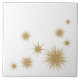 Modern ceramic tile featuring stylish gold starburst design on a white background. Simple, clean modern design.