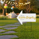 Guide your guests effortlessly to the celebration with this chic directional yard marker featuring bold gold typography. Designed to ensure no one misses the festivities, this left-pointing sign combines a trendy mix of script and sans-serif fonts against a clean white background for a look that is both functional and stylish. Perfect for placing at key intersections or the end of a driveway, this weather-resistant outdoor display adds a cohesive, polished touch to your venue entrance while serving as an essential wayfinding tool for friends and family arriving for the big day.