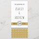 Modern yet with a vintage feel to it gold typography wedding program that showcases a white geometric pattern on gold and a banner with your wedding date.