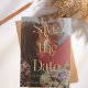 A modern save the date announcement with your favorite photo overlaid with "save the date" in modern gold serif display font. The color of this is editable.