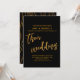 Modern Gold Waves and Handwriting Black Wedding Invitation