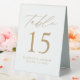Trendy, minimalist wedding table number tent signs featuring gold modern lettering with "Table" in modern calligraphy script. The design features a white background or a color of your choice. The design repeats on the back. To order the table number tent signs: personalize with your names, wedding date, and table number. Add each number to your cart individually and check out when you're finished.