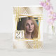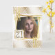 Celebrate your 21st birthday with this modern and chic design featuring faux gold plaid stripes on white that line the top and bottom edge of the card and frame a square faux gold geometric photo frame. The numbers twenty one appear in a faux gold at the bottom giving a stylish and elegant look to the overall design. The message inside may be changed to suit your personal requirements. Ideal for women.