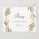 Modern Golden Leaf Wreath Wedding RSVP Postcard