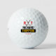 White golf ball personalized with name in a bold font style, for an elegant golfer... a simple black and red monogrammed design, with crossed golf clubs, his initials and name... a cool gift idea for that stylish golf player in your life.
