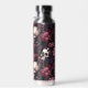 Modern Gothic Skull Pink Flower Pattern Water Bottle