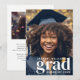 Announce your student's graduation with this modern graduation announcement featuring 2 photos. The front of the announcement has a full-bleed photo covering the announcement along with modern text spelling out "grad", your graduate's name and class year. The back of the announcement has a 2nd photo template with a text template to personalize with your desired text.