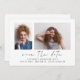Modern Grad 2 Photos Script Graduation. Available digitally and printed. Simply replace the two sample photos with your own and personalise with your details at the bottom. Save the Date is in a stylish handwritten style set script.