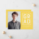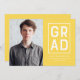 Celebrate your son or daughter's graduation with "Modern Grad Block" announcements. The minimalist design features a yellow background on the front and back, the word "Grad" inside a rectangular white frame, and placeholders for an image and custom text.
