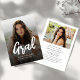 Celebrate your achievement with this Modern Script Photo High School Graduation Invitation. Featuring elegant script, luxurious foil accents, and space for a cherished photo, this sleek and stylish design adds a personal touch to your special milestone. Perfect for inviting family and friends to join in the celebration.
