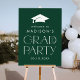Welcome guests to your graduation party with this simple, modern graduation party sign! The sign displays a white graduation cap near the top of the design with a solid green background. "Grad Party" is featured in trendy white lettering with the graduation year displayed inside the letter 'd'. Personalize the green graduation party sign with the graduate's name and date. This sign is perfect for both high school and college graduation parties.