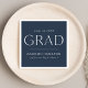 Stylish graduation napkins featuring "Grad" displayed in white modern lettering with a navy background. Personalize the modern graduation paper napkins with the graduate's name, school name, and graduation year.