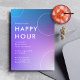 A happy hour invitation featuring a modern blue and purple gradient as background. Use this invitation to invite your employees or colleagues to your company's happy hour event.